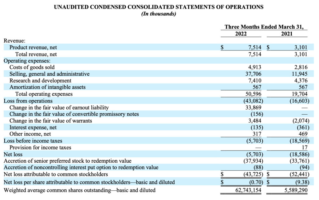 Company reiterates guidance of $58M in projected product revenue for 2022